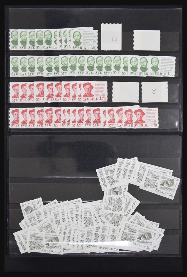5942   imageSweden, Collection of Coils, 1960-84, specialities lot including 1960 Europa issue in quantities, all from the start of the roll/coil, 1980, 1982 and 1984 Europa stamp, all with 00 at back (start of the coil), on stockcards, glassines and in folder; seldom offered in such quantities, fully imaged online; unavailable for in-person viewing. (PDF for this Lot) (Image) Suggested Bid $80
