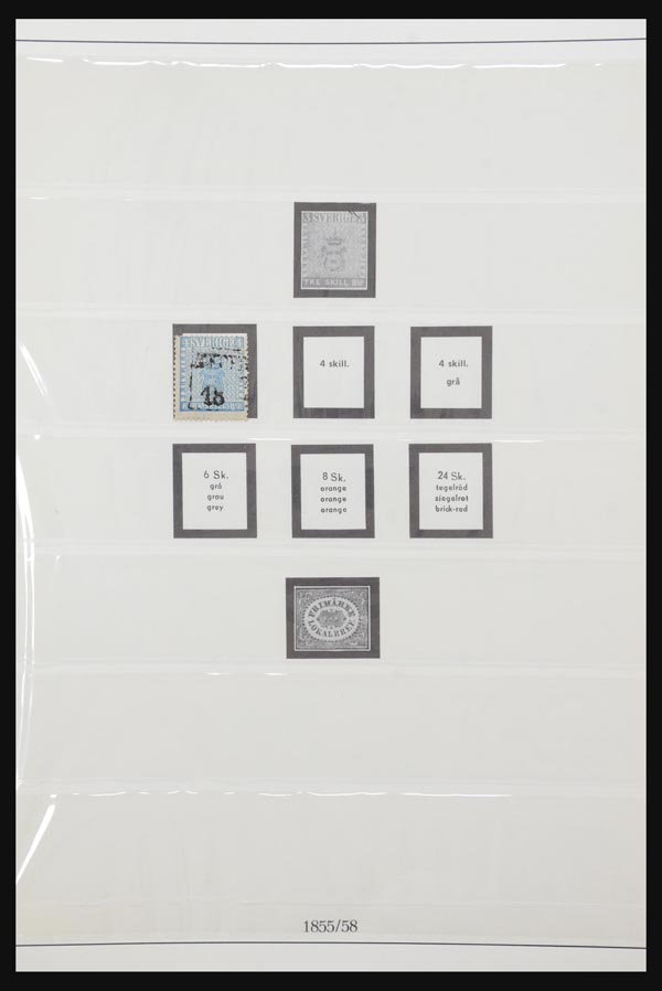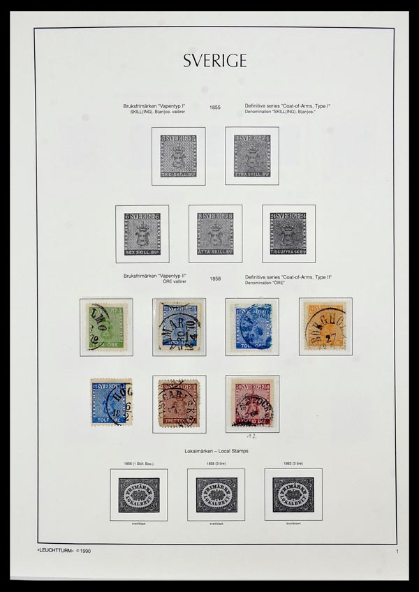 5934   imageSweden, Largely Used Collection, 1855-1984, nicely filled, partly double, mint never hinged, mint hinged and (mostly) used stamp collection in four luxe Lindner albums with slipcases, fully imaged online; unavailable for in-person viewing. (PDF for this Lot) (Image) Suggested Bid $325