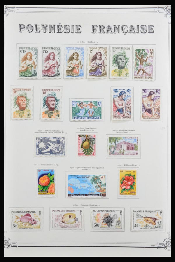 5957   imageTahiti, Enticing Mint Collection, 1958-82, complete, mint hinged collectiom on Yvert album pages in folder, in which all good sets, airmail stamps, postage dues, souvenir sheets etc.; features (all mint, hinged) (Yvert no's): 15-16, 18-21, 42-45, 52-59, 89-90, Airmail 1-4, 10, 15, 25, 27, 29-30, 31, 32-33, 40-44, 51-54, 55-59, 65-69, 70, 77-81, 84-88, Officials 1-15, Souvenir Sheets 1, 2, 3, 4, 5, 6, etc.; very high catalogue value, fully imaged online; unavailable for in-person viewing. (PDF for this Lot) (Image) Suggested Bid $400
