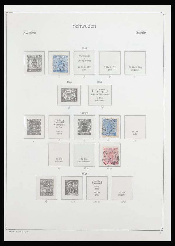 5932   imageSweden, Mostly Used Collection, 1855-1984, mostly used stamp collection in Kabe album; features better material like (Michel no's): 4, 7-12, 15a, 26A, 54, 144-158 (1st UPU set), 159-173 (2nd UPU set), etc., fully imaged online; unavailable for in-person viewing. (PDF for this Lot) (Image) Suggested Bid $500