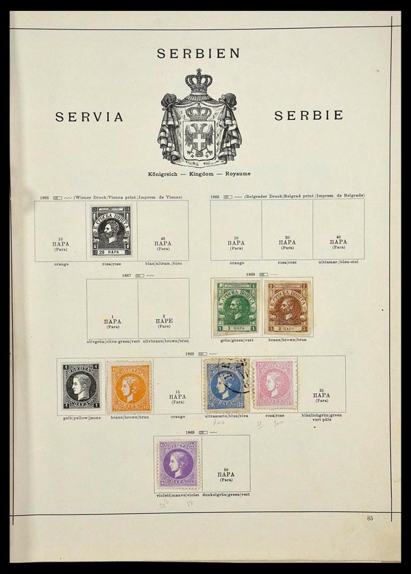 5925   imageSerbia, Mint and Used Collection, 1868-1945, mint hinged and used collection on album pages in folder; featuring better stamps, fully imaged online; unavailable for in-person viewing. (PDF for this Lot) (Image) Suggested Bid $120