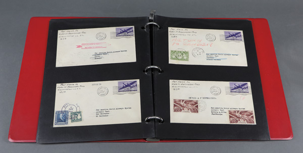6032   imageWorldwide, Pan American Test Mail Flights, 1946, 30 mixed franked envelopes in a 3-ring binder; includes round trips to Dominican Republic, Argentina, Bolivia, Brazil, British Guiana, Antigua, St Lucia, Chile, Columbia, Costa Rica, Ecuador, El Salvador, French Guiana, Guadeloupe, Guatemala, Haiti, Honduras, Jamaica, Martinique, Curacao, Nicaragua, Panama, Paraguay, Peru, Suriname, Trinidad, Uruguay, and Venezuela; interesting, Fine to Very Fine. Shipping charges apply - weight 2 lbs. (Video for this lot) (Image) Suggested Bid $300