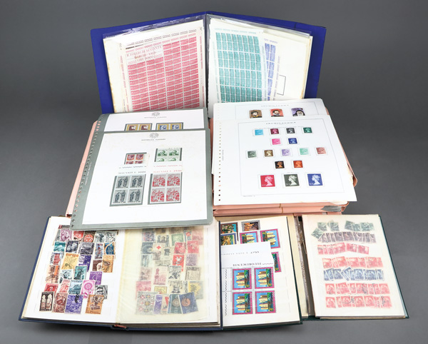 6031   imageWorldwide, Really nice mini collections 1871-2016, They include Aland (1985-2005 in Schaubek album), over 100 German (BRD) postmarked souvenir sheets in slim stockbook, Greenland town cancel (84 towns) neatly organized 15 to a sheet, pictorial cancels on Swedish booklet panes in Scandinavian binder, worldwide issues (several hundred) on album pages to about 1930, Greenland dealer's stock of used (moderate to large duplication) in slim Lighthouse stockbook, stockbook of fresh (mostly mint) Great Britain and Commonwealth, album well stocked (Australia, Great Britain, Ireland, Israel, and Vatican City), several hundred beautifully organized used Sweden in European stockbook, beefy Lighthouse stockbook beautifully appointed (Germany, Austria, Poland, US, and France), and old school handmade pages (Abyssinia, Egypt, Liberia, and Sudan); each would sell really well at your next stamp show, Fine to Very Fine. Shipping charges apply - weight 33.4 lbs. (PDF for this Lot) (Image) Suggested Bid $400