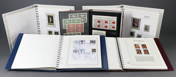 6036   imageWorldwide, Topical Collections of Art, Balloon Mail & More, 1930-97, Art is the main theme beginning with stamps & souvenir sheets of the Italian renaissance giant Titian in a hingeless album, two more hingeless albums with a mint collection depicting European art on the stamps of Germany, Spain and Yugoslavia, and a special Lindner publication of Austrian Ballonpost entitled Die Weinachts Ballonpost aus Christkindl featuring 40 covers from 1961-97. In addition, a stockbook with some very interesting Cinderella sheetlets, mostly from stamp exhibitions, such as the 24th Philatelic Congress of Great Britain in 1939 Bath or one from the Praha 1938 International Philatelic Exhibition, generally Fine to Very Fine, video flips accessible online. Shipping charges apply - weight 20.4 lbs. (Video for this lot) (Video2 for this lot) (Video3 for this lot) (Image) Suggested Bid $200