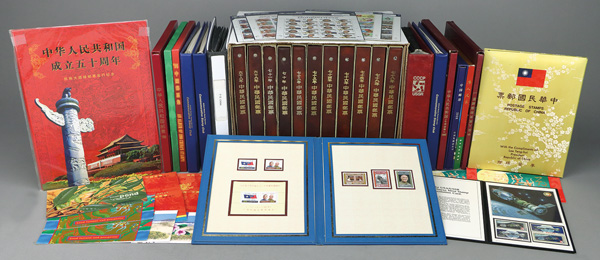 6034   imageWorldwide, "Mint Bonanza" Hodgepodge of People's Republic of China, Taiwan, Russia, & Other Finer Material, 1900-2008, a large accumulation of worldwide material mostly focused on Taiwan and the People's Republic of China; features 11 Taiwan albums with informational pages, appearing to be a complete collection from 1979 to 1990; a primarily mint Russia collection in album (1900-1992), with many later Soviet plate blocks and souvenir sheets; 11 Taiwan and People's Republic of China year sets (1978-2008), including the 2008 CNPEC Set; some U.S. First Day Covers, with three USPS Commemorative Club binders with mint U.S. from 1986-1990; one worldwide binder with Hong Kong and mid-to-late 1980's People's Republic of China material, with souvenir sheets; an accumulation with some finer material ideal for a collector looking to fill spots in their collection or for a reseller looking for a great online trading opportunity; we encourage in-person inspection for this lot. Shipping charges apply - weight 66 lbs. (Image) (Image2) (All Images)