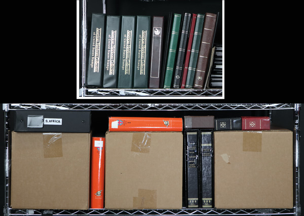 6060   imagePhilatelic supplies for the budding dealer, 4 new Mystic Heirloom albums; several Lighthouse type stockbooks, 6 used counter binders, several mint sheet files, new Presidents United States Stamp Album, lovely 1932 Abridged Album for United States tamps, 2 copies (still with dustjackets) of Minkus British Asia (Part two), new Palo color hingeless pages for Canadian Provences, several new Lighthouse type cover binders (still in cardboard slipcases); and more; useful. Shipping charges apply - weight 115.2 lbs. (Image) Suggested Bid $325