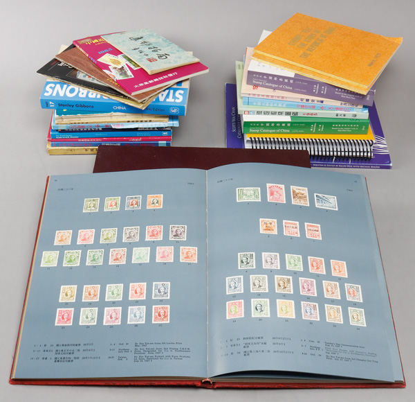 6057   imageVaried, Mini library of China, Korea, and Japan, two dozen titles (mostly perfect bound) in varied condition; includes Complete Illustrated Cataloge in Color of Postage Stamps of the Republic of China (oversized hard cover in slipcase), China 1878-1949 (Weil and Rogers), 1986 Chinese Postage Stamps Catalogue Taiwan Issues, SG Part 17 China (2012), Stamp Catalogue of China 3rd Ed Vol I&II (Shiu-Hon Chan), 1985 Japanese Postage Stamp Catalogue, 1985 Korean Postage Stamp Catalogue, and China Stamp Society Specialized Catalog of China to 1949 (Maxwell), Fine. Shipping charges apply - weight 22.2 lbs. (Image) Suggested Bid $250