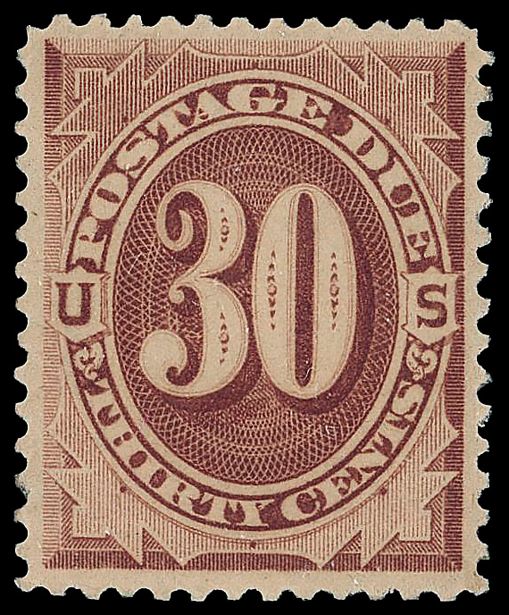 5160 og J6 imagePostage Due, 1879, 30¢ brown (Scott J6), o.g., lightly hinged, Very Fine to Extremely Fine.