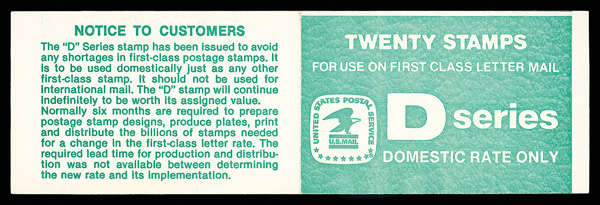 5174 BKnh BK143 image1985 (22¢) "D" Eagle (Scott BK143), o.g., never hinged, pristine booklet opened but all present, the top pane with scarce plate number 2, Very Fine.