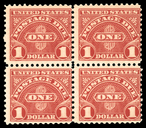 5165 nhbl J77a imagePostage Due, 1930, $1 scarlet (Scott J77a), block of 4, o.g., never hinged, Very Good to Fine.