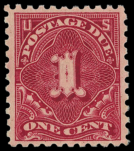 5164 nh J52 imagePostage Due, 1914, 1¢ carmine lake, S.L. watermark, perf. 10 (Scott J52), o.g., never hinged, Very Fine to Extremely Fine.