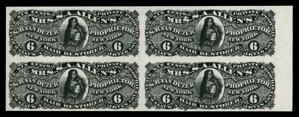 5187 Pbl RS250P3 imageVan Duzer, S.R., 6¢ black, plate proof on India (Scott RS250P3), right margin block of 4, without gum as issued, Very Fine.