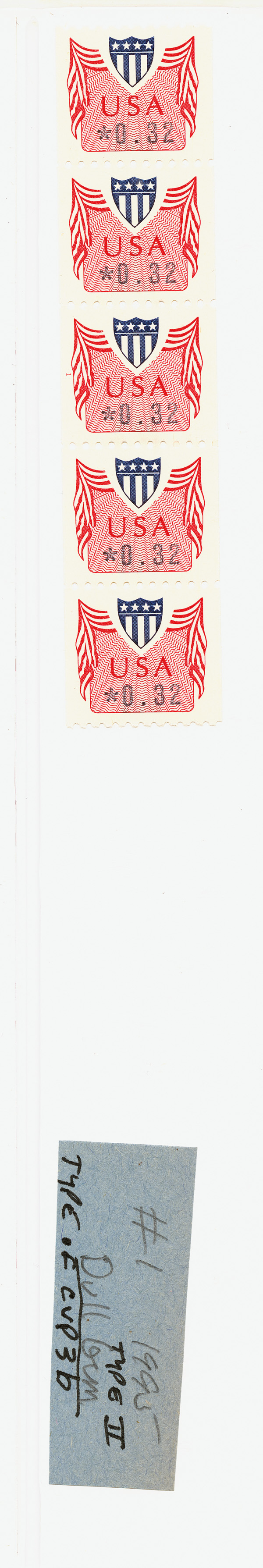 5175 CVP31-CWP33 image1992-1996, Computer Vended Postage coils, plate number strips of 5 (Scott CVP31-CWP33), 41 consisting of Nos. CVP31 (Type I; dull gum; 19¢, 23¢ & 29¢), CVP31a (Type I; shiny gum; 19¢, 23¢ & 29¢), CVP31b (Type II; dull gum; 19¢, 20¢, 23¢, 29¢ & 32¢), CVP32c (Type II; shiny gum; 20¢, 23¢, 29¢ & 32¢), CVP32 (19¢, 23¢ & 29¢), CVP33 (20¢, 23¢ & 32¢), 2 of each except 29¢ CVP31, neatly organized and identified on stockpages, o.g., never hinged, Extremely Fine, fully imaged online. Shipping charges apply - weight 0.6 lbs.