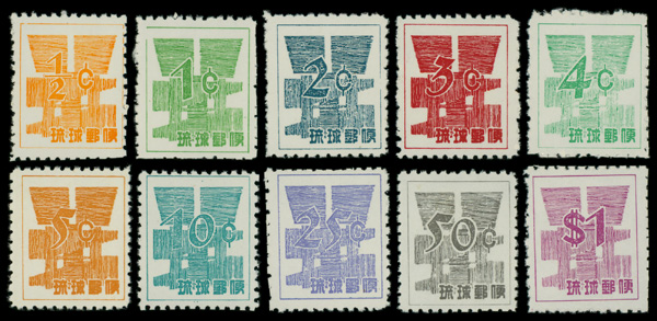 8475 ng 44-53 image1958, U.S. Currency Provisionals, ½¢-$1 complete (Scott 44-53), without gum as issued, Fine to Very Fine.