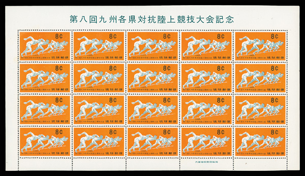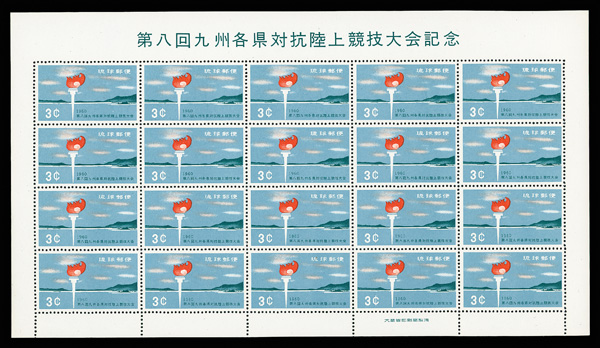 8479 nhbl 72-73 image1960, Kyushu Interprefectural Athletic Meet complete (Scott 72-73), set of 2, panes of 20, o.g., never hinged, Very Fine to Extremely Fine.