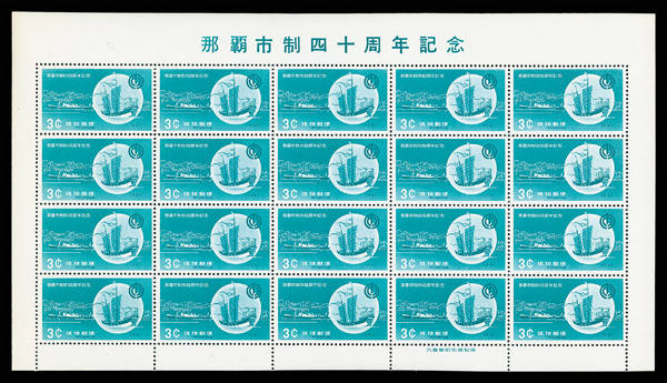 8480 nhbl 89 image1961, 3¢ Naha City (Scott 89), pane of 20, o.g., never hinged, Extremely Fine.