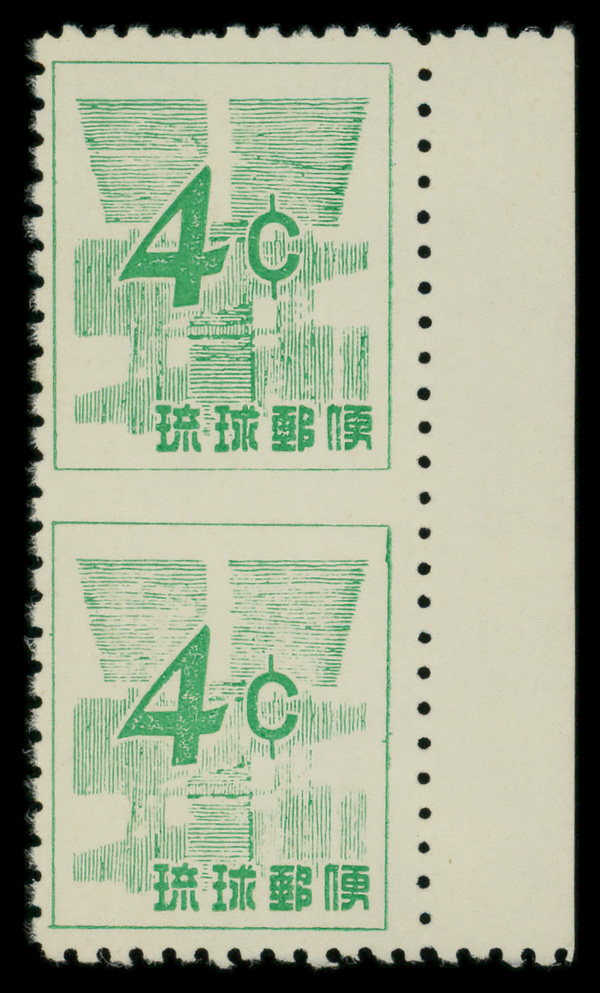 8477 ng 48b image1958, U.S. Currency Provisional, 4¢ bright green, imperf between (Scott 48b), vertical pair, without gum as issued, Fine to Very Fine.