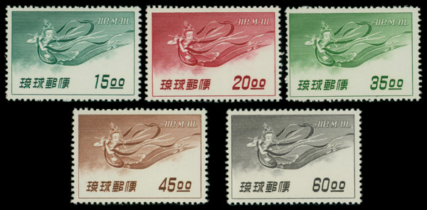 8502 nh C9-C13 imageAirmail, 1957, 3rd Issue, 15y-60y complete (Scott C9-C13), o.g., never hinged, Very Fine.