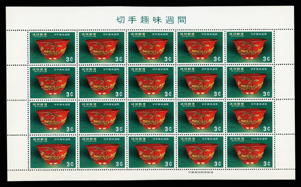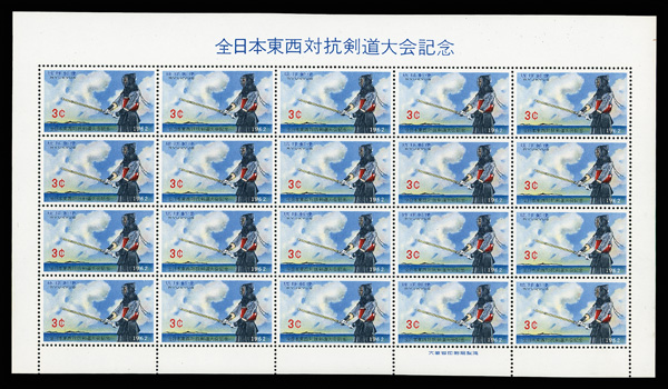 8482 nhbl 104 image1962, 3¢ All-Japan Kendo Tournament (Scott 104), pane of 20, o.g., never hinged, Extremely Fine.