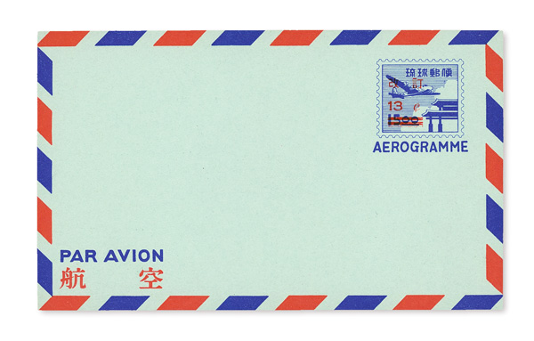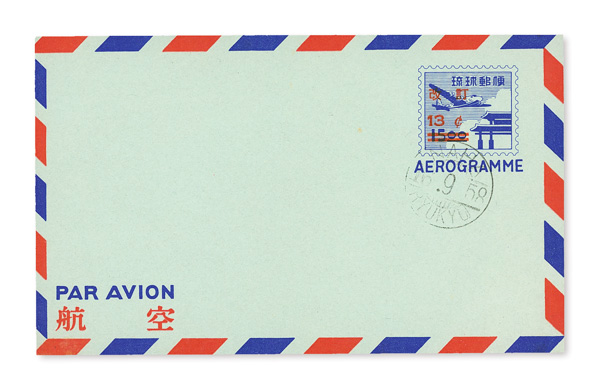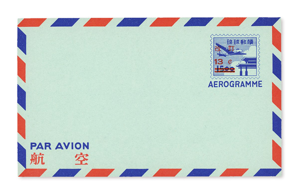 8507 nh UC3c imageAir Letter Sheet, 1959, 13¢ surcharge type "c" on 15y violet blue & bright red on pale yellow green (Scott UC3c), o.g., never hinged, Extremely Fine.