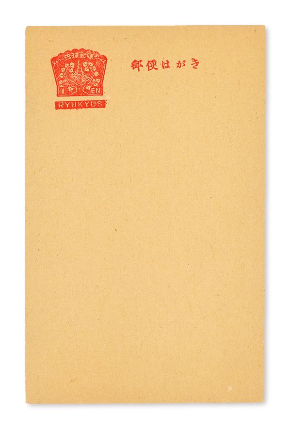 8513 nh UX5 imagePostal Card, 1952, 1y vermilion on tan, Naha large die (Scott UX5), o.g., never hinged, Extremely Fine.
