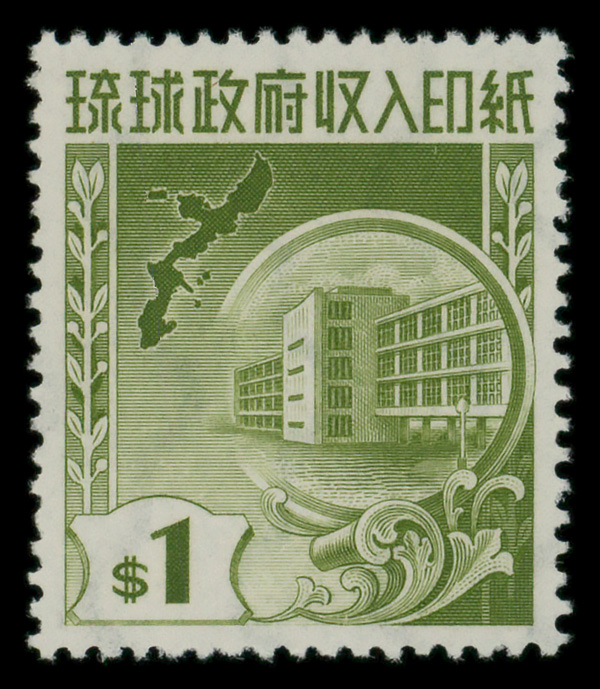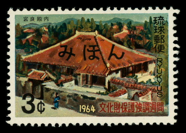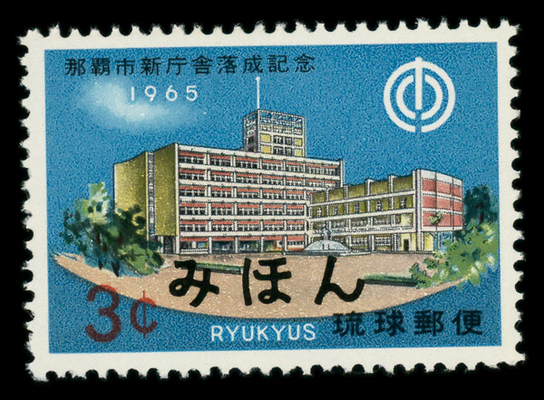 8498 Snh 135S image1965, 3¢ Naha City Hall, Mihon specimen overprint (Scott 135S), o.g., never hinged, Extremely Fine.