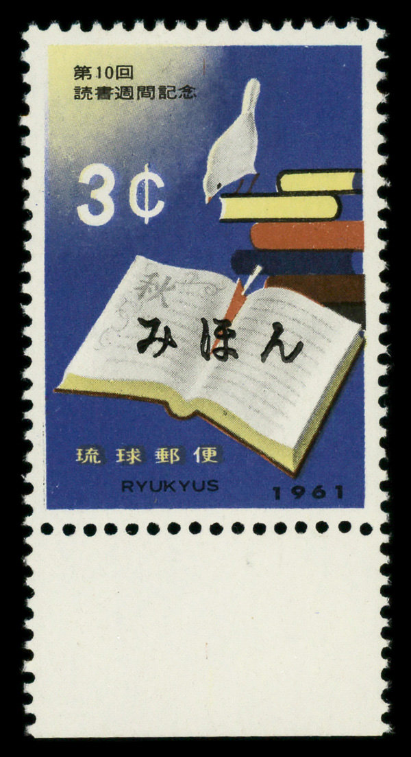 8481 Snh 91S image1961, 3¢ Book Reading Week, Mihon specimen overprint (Scott 91S), o.g., never hinged (owner's handstamp on gum), Extremely Fine.