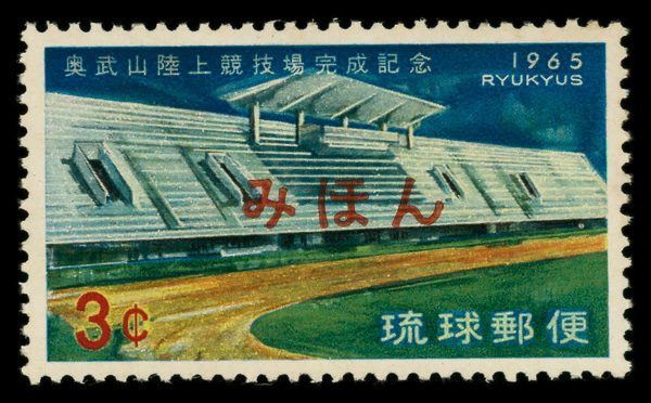 8494 Snh 131S image1965, 3¢ Onoyama Stadium, Mihon specimen overprint (Scott 131S), o.g., never hinged, Extremely Fine.