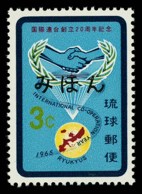 8497 Snh 134S image1965, 3¢ U.N. 20th Anniversary, Mihon specimen overprint (Scott 134S), o.g., never hinged, Extremely Fine.