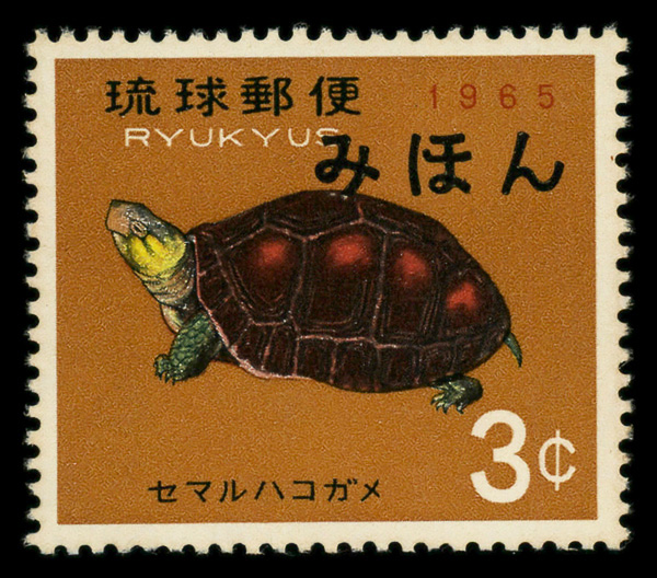 8499 Snh 136S image1965, 3¢ Semaruhakogame (Chinese Box) Turtle, Mihon specimen overprint (Scott 136S), o.g., never hinged, Extremely Fine.