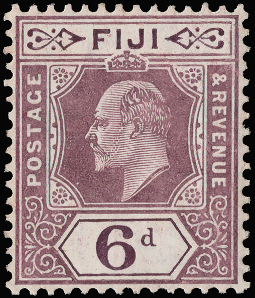 8886 og 74 var. image1910, King Edward VII, 6d dull purple, damaged frame & crown (Scott 74 var.), watermarked Multiple Crown CA, o.g., lightly hinged, fresh and perfectly centered; with just a bit of faint gum toning visible on the reverse only, still Very Fine. This variety is unlisted on the 6d multiple Crown CA watermark.