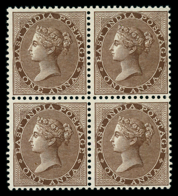 8907 ogbl 22 image1865, Queen Victoria "Crown Colony" Issue, 1a deep brown (Scott 22), block of 4, o.g., lightly hinged, Fine.