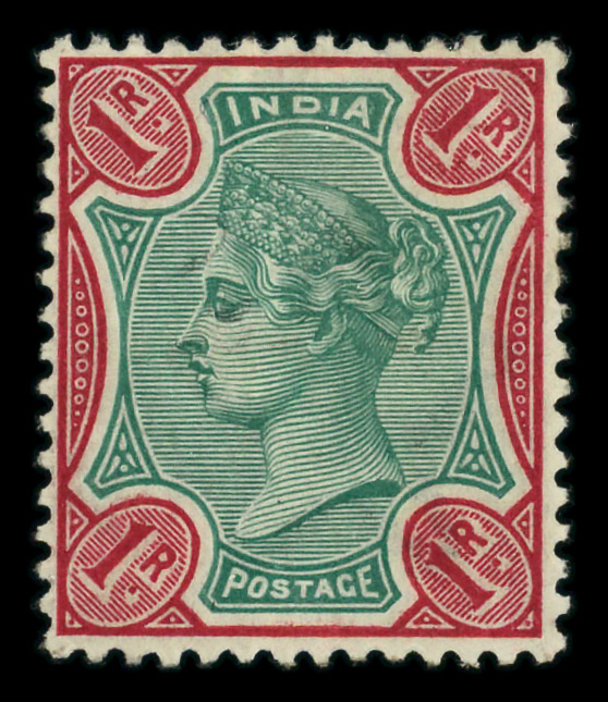 8915 og 49 image1892, Queen Victoria, 1r green & aniline carmine (Scott 49), disturbed o.g., Fine.