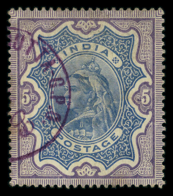 8918 O 52 image1895, Queen Victoria "Widow's Weeds", 5r ultramarine & violet (Scott 52), Extremely Fine.
