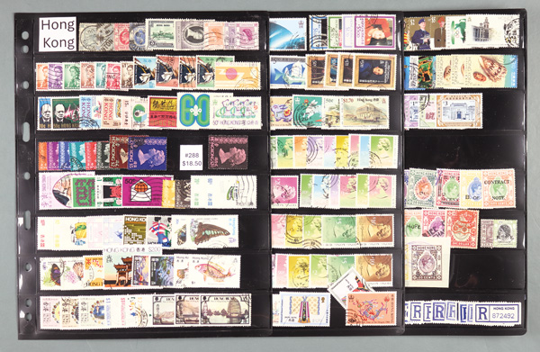 8899   imageHong Kong, Complete used collection 1896-2006, 300+ used one-of-the-kind collection of stamps from Hong Kong; includes #38//1292; several complete sets and some top values; includeed, but not counted, is a nice selection of non-Scott revenues; catalog $650, Fine to Very Fine. (PDF for this Lot) (Image) Suggested Bid $60