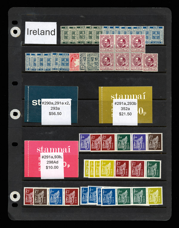 8919   imageIreland, As fresh as an Irish Spring 1932-1998, Over 600 all MNH collection of singles, sets, unexploded booklets, and souvenir sheets from Ireland; items include #85//1609, C3, and J25//J34; catalog $1,000+, Very Fine. Shipping charges apply - weight 1.2 lbs. (PDF for this Lot) (Image) Suggested Bid $200