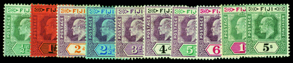 8883 og 59-68 image1903 King Edward VII, ½d-5sh (Scott 59-68), watermarked Crown CA, singles, o.g., hinge remnant, Fine to Very Fine.