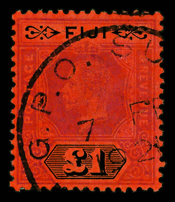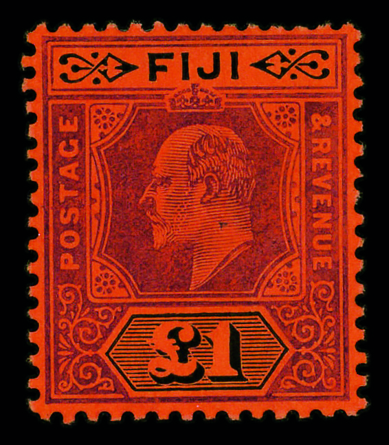 8887 og 78 image1912, King Edward VII, £1 purple & black on red (Scott 78), watermarked Multiple Crown CA, single, o.g., hinge remnant, Very Fine.