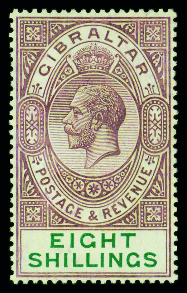 8893 og 63 image1911, King Edward VII, 8s purple & green, Multiple Crown CA watermark (Scott 63), single, o.g., lightly hinged, Very Fine.