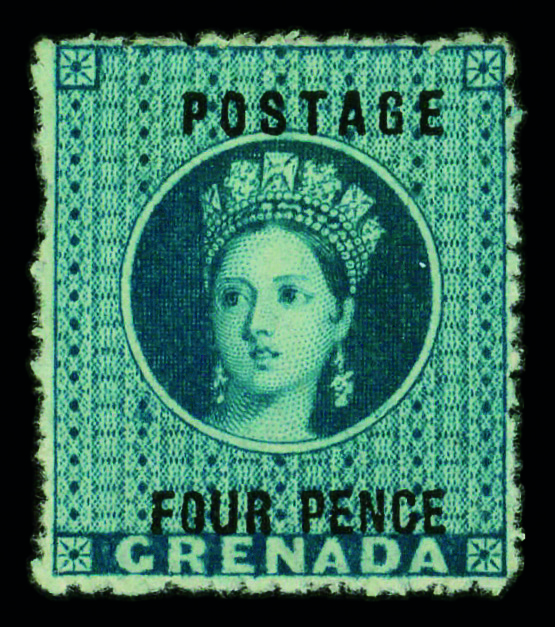 8910 ng 26 image1866, Queen Victoria "Crown Colony" Issue, 4a green, Die I (Scott 26), unused without gum, Very Good to Fine.