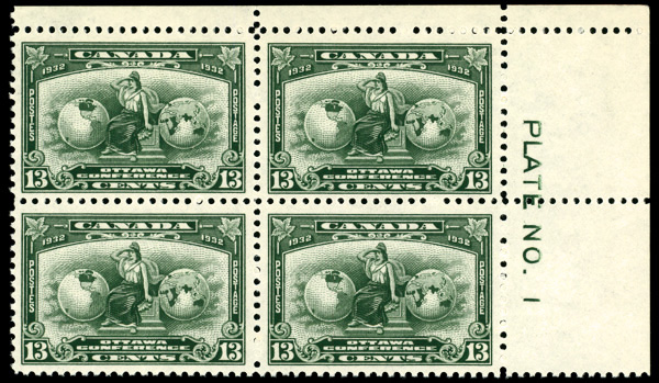 9063 nhbl 194 image1932, 13¢ Ottawa Conference (Scott 194), plate block of 4, o.g., never hinged, Very Fine.
