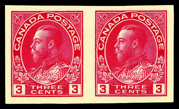 9045 nh 138 image1924, King George V "Admiral", 3¢ carmine, imperf. (Scott 138), pair, o.g., never hinged, Fine to Very Fine.