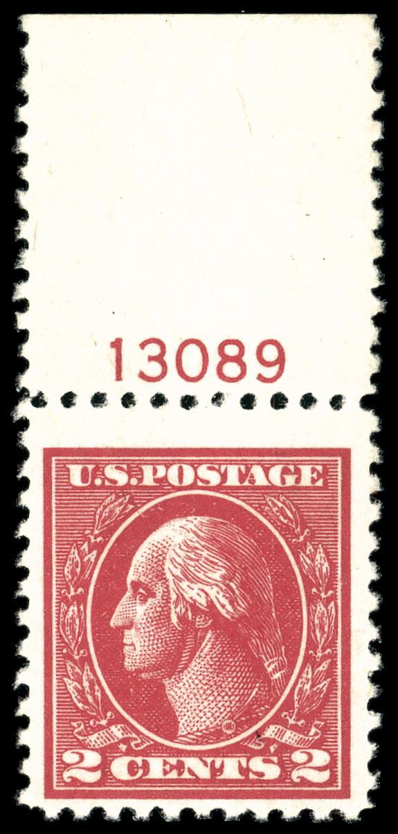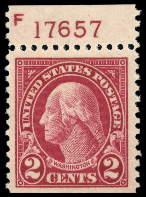 8108 nh 554 image1923, 2¢ Washington (Scott 554), plate number single, o.g., never hinged, jumbo margin, Extremely Fine. (Image) Suggested Bid $84