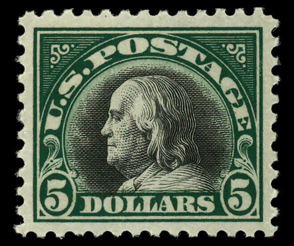 8092 nh 524 image1918, $5 deep green & black (Scott 524), o.g., never hinged, Extremely Fine.