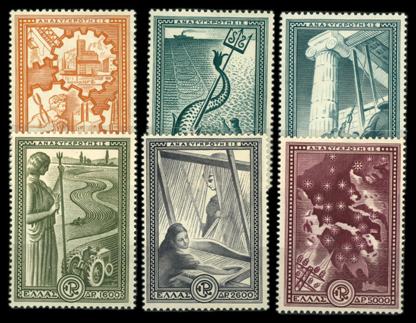 9170 og 539-544 image1951, Marshall Plan complete (Scott 539-544), set of 6, complete set of singles, o.g., hinged, Fine to Very Fine.