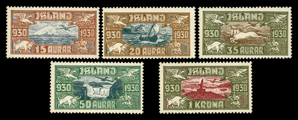9187 og C4-C8 imageAirmail, 1930, Parliament Millennium complete (Scott C4-C8), set of 5, o.g., lightly hinged, Very Fine.