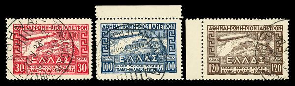 9171 O C5-C7 imageAirmail, 1933, Graf Zeppelin complete (Scott C5-C7), set of 3, complete set of singles, Extremely Fine.