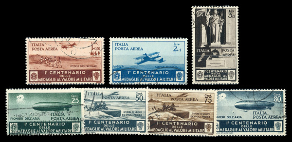 9200 O C66-C72 image1934, Centenary of the Institution of the Military Medal of Valor complete (Scott C66-C72), complete set of single, Very Fine.