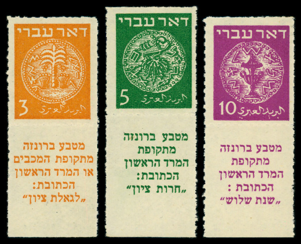 9190 nh 1a-3b image1948, 3m to 10m First Coins, rouletted (Scott 1a-3b), set of 3, tab singles, o.g., never hinged, Very Fine.