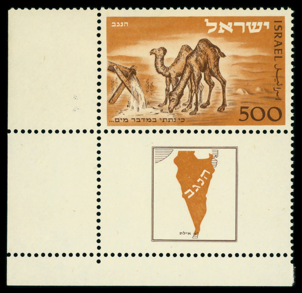 9193 nh 25 image1950, 500p Negev Camel (Scott 25), tab single, o.g., never hinged, Very Fine.